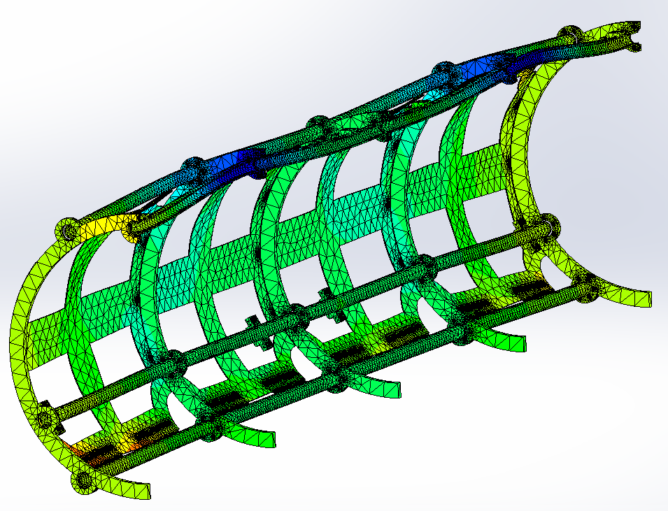 FInite elements study to determine the maximum mechanical deformations during the lifting of the frame.